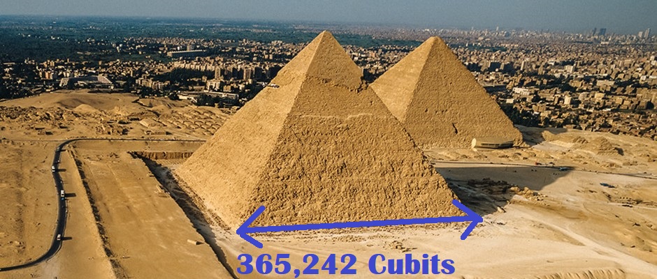 If you take the length of the Great Pyramid at it’s base from one corner to the other, it translates into 365,242 pyramid cubits which happens to be the earthly year right down to the extra 1/fourth of a day we have extra every year(that’s why we have leap years with 366 days).