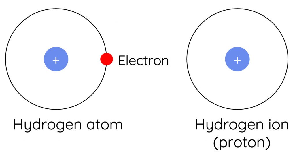 This process got the nucleus in its naked state and that hydrogen became H+ the acidic hydrogen. And the hydrogen experienced that it’s very uncomfortable to be in a naked state.