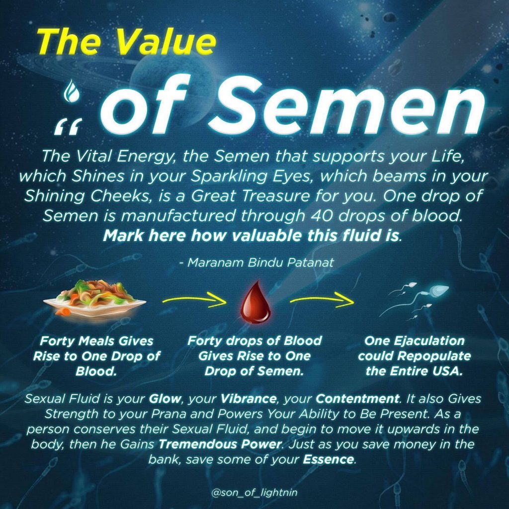 Now, let’s shift our focus to the remarkable process of reproduction. It’s astounding to realize that it takes about 40 meals to give rise to a single drop of blood. This drop of blood, in turn, holds the potential to transform into a single drop of semen. This revelation highlights the intricate transformation that occurs within the human body, where sustenance is converted into life-giving elements. It’s as if every meal contributes to the awe-inspiring journey of creation.